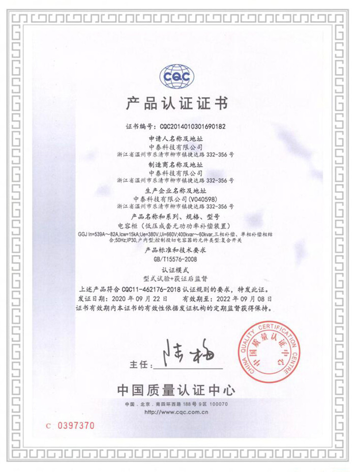 **質(zhì)量認證產(chǎn)品認證證書