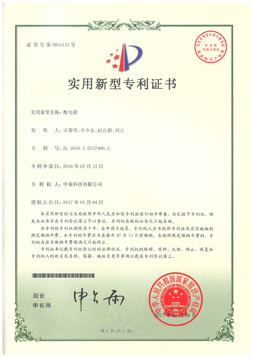 實(shí)用新型專利證書