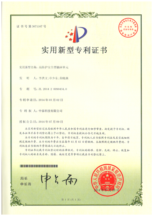 實(shí)用新型專利證書(shū)